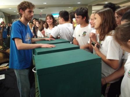 ACAPRENA participa do Interação Júnior da FURB Publicado em: 14/06/2012 às 16:33 Nesta quarta-feira 13/06, a ACAPRENA – Associação Catarinense de Preservação da Natureza, participou de mais uma edição do Interação FURB. Direcionado para alunos do Ensino Fundamental do 6º ao 9º ano, o Interação Júnior oferece exposições, oficinas e visitas orientadas em laboratórios, bibliotecas e outros locais da universidade. Nesta edição, o sócio da ACAPRENA e biólogo Jonata Giovanella auxiliou na Exposição da Semana do Meio Ambiente e distribuição de mudas, e também na oficina “Estudando os animais”, do laboratório de Taxidermia da FURB, realizadas no Giassi Supermercados.